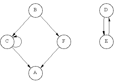 edge set: (B,C) (B,F) (C,A) (C,C) (D,E) (E,D) (F,A)
