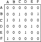 vertex set: A B C D E F
