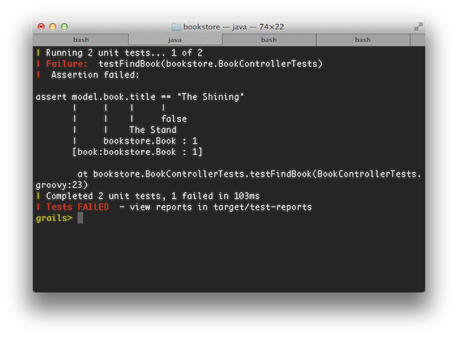 Grails 2.0 features brand new console output that is more concise and user friendly to consume. An example of the new output when running tests can be seen below: