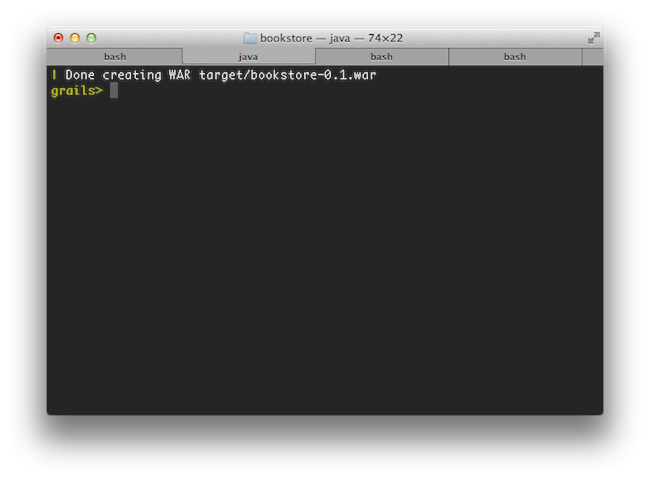 war command produced many lines of output, in Grails 2.0 only 1 line of output is produced: