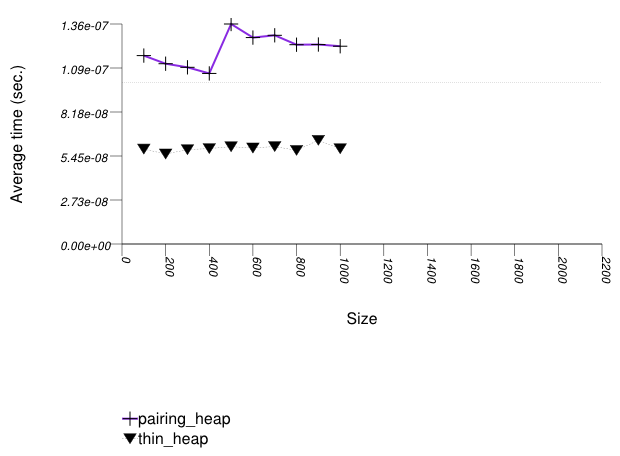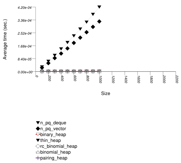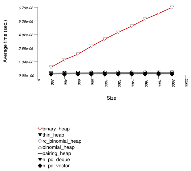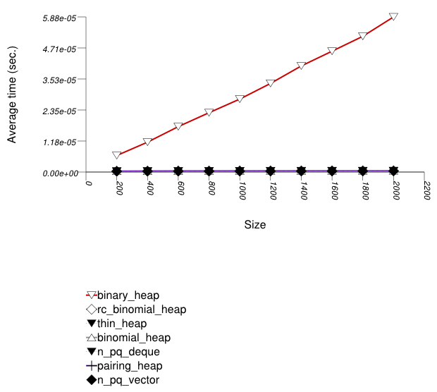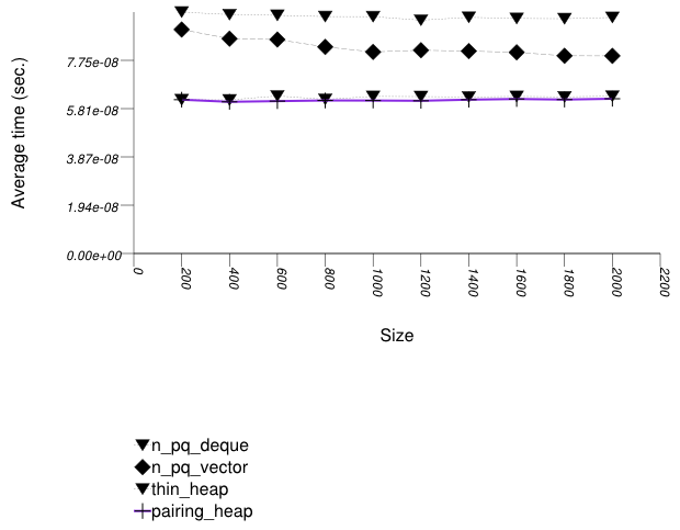 As the table shows, the "least constrained" underlying data structures are binary heaps and pairing heaps. Consequently, it is not surprising that they perform best in terms of amortized constants.