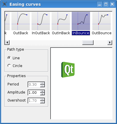 The Easing Curves example shows how to use easing curves to control the speed of an animation.