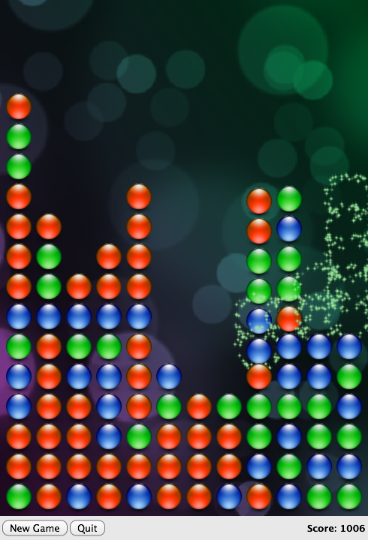 The Qt Quick Same Game demo shows how to write a 'Same Game' game in QML, using Javascript for all the game logic.