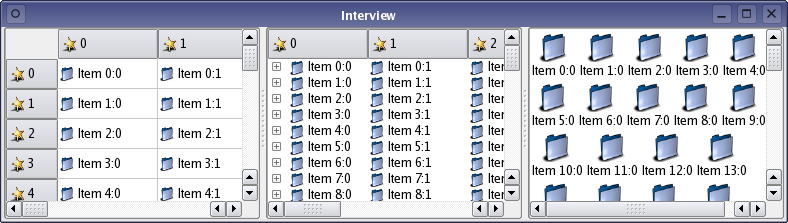 The Interview demonstration explores the flexibility and scalability of the model/view framework by presenting an infinitely deep data structure using a model and three different types of view.