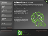 Run it and see Qt's features in action. You can also start all examples and demos from it as separate applications or browse to the source code. Qt Creator allows loading of examples as projects with a wizard on the "Welcome" page.