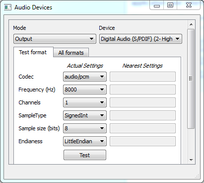 This example allows you to browse audio devices available and try out different configurations to see if they are supported.