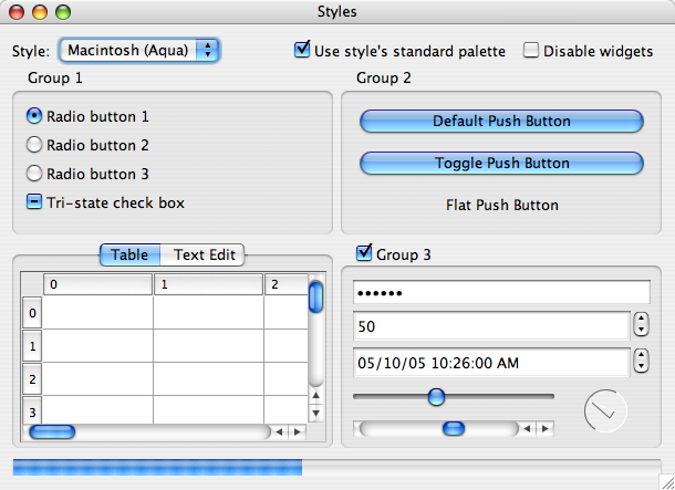 The QMacStyle class provides a Mac OS X style using the Apple Appearance Manager.
