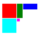 import QtQuick 1.0 Grid { columns: 3 spacing: 2 Rectangle { color: "red"; width: 50; height: 50 } Rectangle { color: "green"; width: 20; height: 50 } Rectangle { color: "blue"; width: 50; height: 20 } Rectangle { color: "cyan"; width: 50; height: 50 } Rectangle { color: "magenta"; width: 10; height: 10 } }
