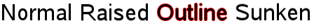 Row { Text { font.pointSize: 24; text: "Normal" } Text { font.pointSize: 24; text: "Raised"; style: Text.Raised; styleColor: "#AAAAAA" } Text { font.pointSize: 24; text: "Outline";style: Text.Outline; styleColor: "red" } Text { font.pointSize: 24; text: "Sunken"; style: Text.Sunken; styleColor: "#AAAAAA" } }