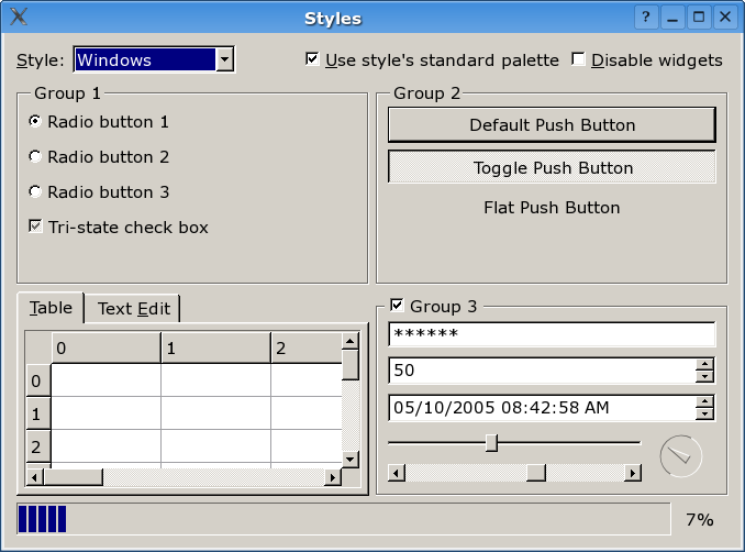 The QWindowsStyle class provides a Microsoft Windows-like look and feel.