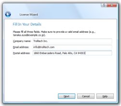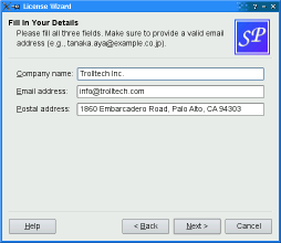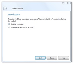 QWizardPage *createIntroPage() { QWizardPage *page = new QWizardPage; page->setTitle("Introduction"); QLabel *label = new QLabel("This wizard will help you register your copy " "of Super Product Two."); label->setWordWrap(true); QVBoxLayout *layout = new QVBoxLayout; layout->addWidget(label); page->setLayout(layout); return page; } QWizardPage *createRegistrationPage() { ... } QWizardPage *createConclusionPage() { ... } int main(int argc, char *argv[]) { QApplication app(argc, argv); QString translatorFileName = QLatin1String("qt_"); translatorFileName += QLocale::system().name(); QTranslator *translator = new QTranslator(&app); if (translator->load(translatorFileName, QLibraryInfo::location(QLibraryInfo::TranslationsPath))) app.installTranslator(translator); QWizard wizard; wizard.addPage(createIntroPage()); wizard.addPage(createRegistrationPage()); wizard.addPage(createConclusionPage()); wizard.setWindowTitle("Trivial Wizard"); #ifdef Q_OS_SYMBIAN wizard.showMaximized(); #else wizard.show(); #endif return app.exec(); }