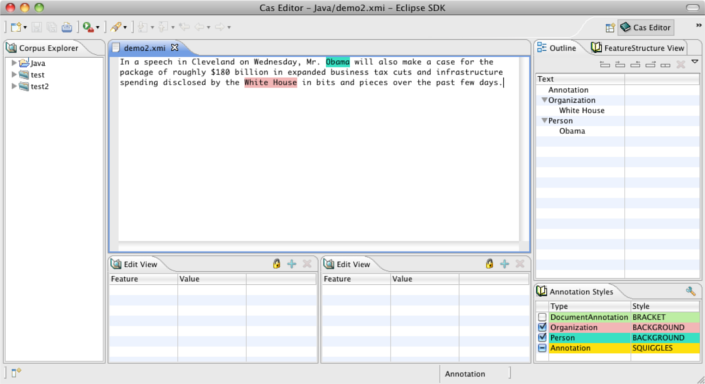 The Component Descriptor Editor is an Eclipse plug-in that provides a forms-based interface for creating and editing UIMA XML descriptors. It supports most of the descriptor formats, except the Collection Processing Engine descriptor, the PEAR package descriptor and some remote deployment descriptors.