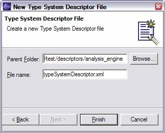 If the user then selects UIMA and Analysis Engine Descriptor File, and clicks the Next > button, the following dialog is displayed. We will cover creating other kinds of components later in the documentation.