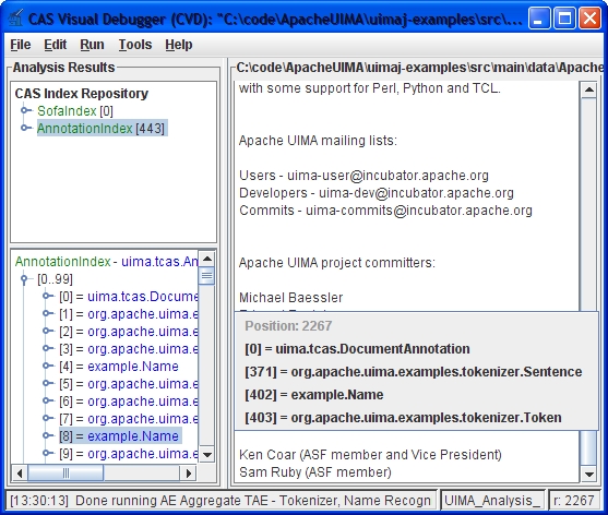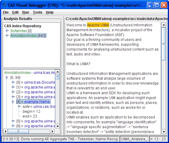 provided with the UIMA package. The CVD application will load your UIMA component using